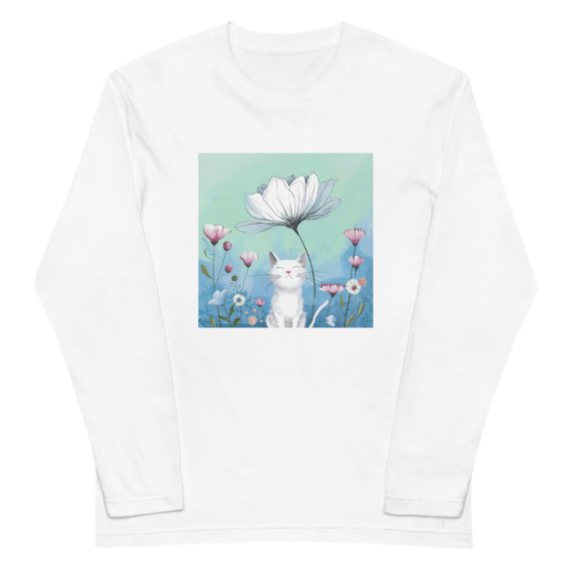 長袖Tシャツ ユニセックス 花の中のねこ P0010