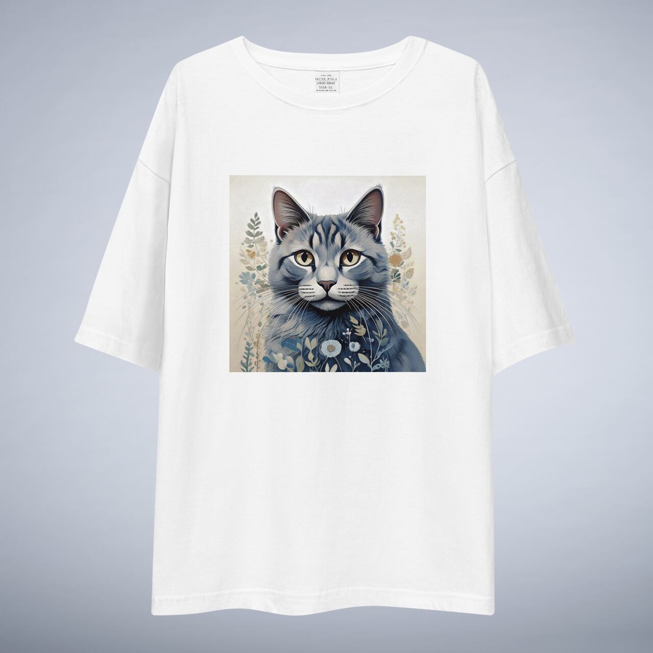 ビッグシルエットTシャツ ユニセックス 花とねこ P0006